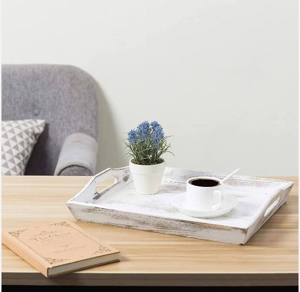 ถาดเสิร์ฟอาหารทำด้วยมือทรงสี่เหลี่ยมถาดเสิร์ฟพร้อมที่จับสำหรับร้านอาหารโรงแรม