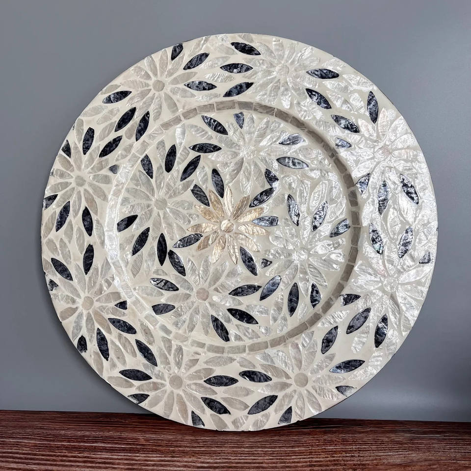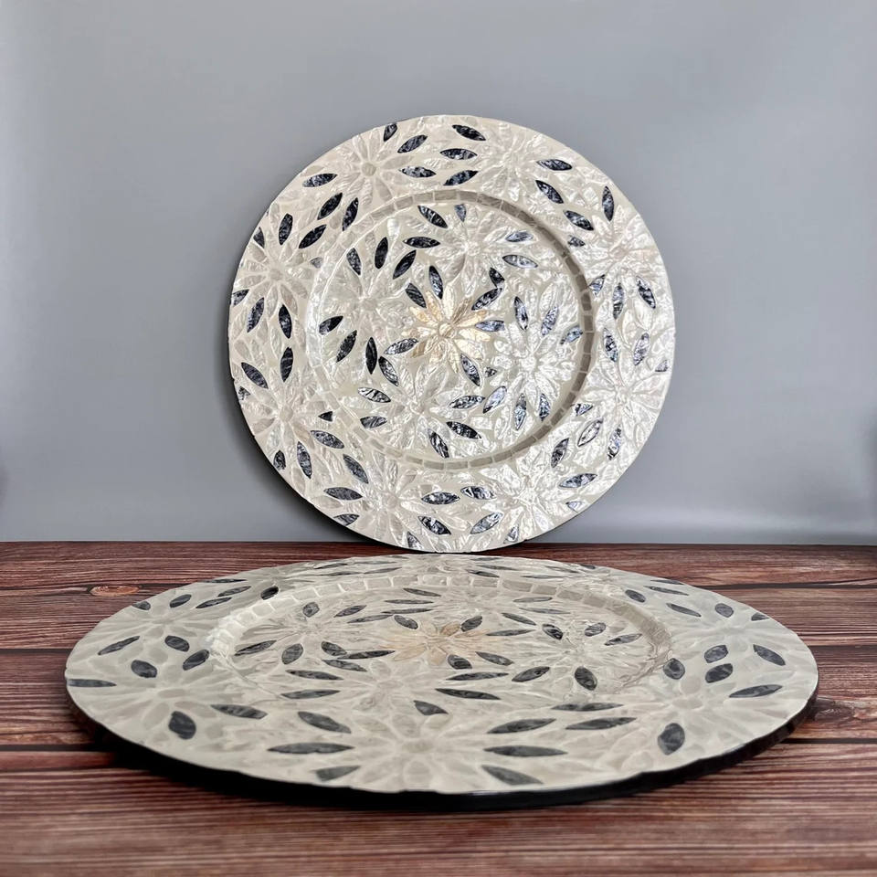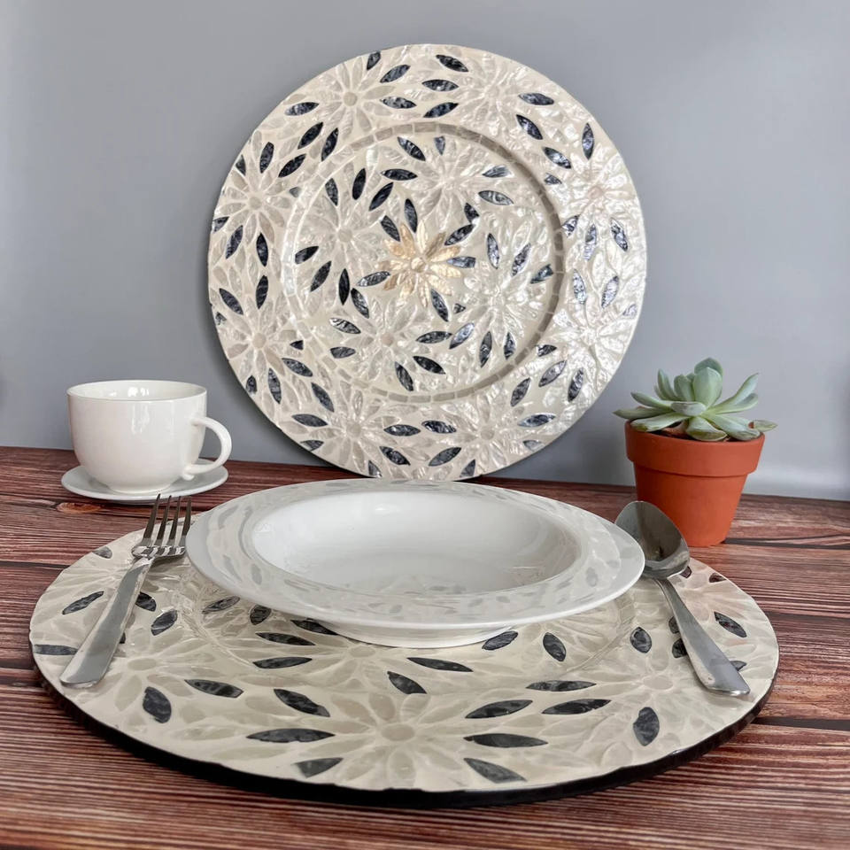 แผ่นรองจานทำด้วยมือแฟชั่นทรงกลมหรูหราสำหรับเสิร์ฟอาหารแม่ของมุกไม้ก๊อกสำหรับเครื่องใช้บนโต๊ะอาหารการตกแต่งโต๊ะกาแฟ