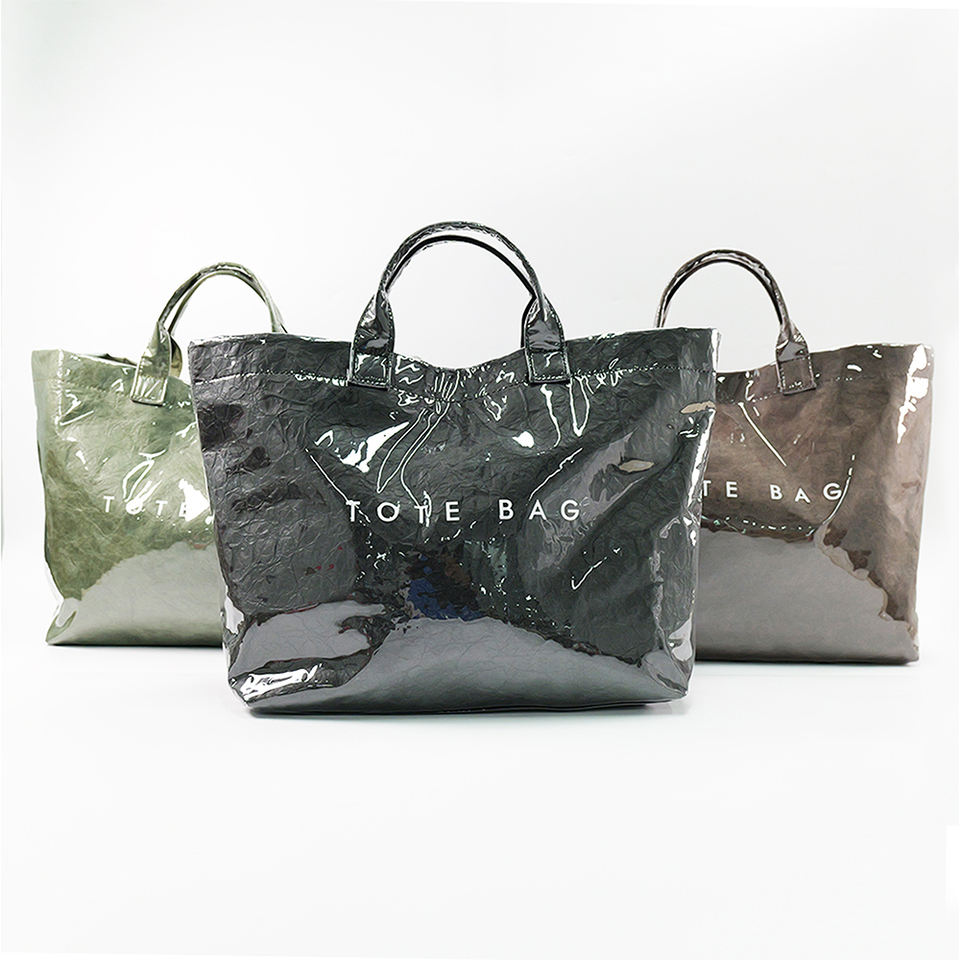 ถุงผ้าพีวีซีทนทานแบบซักได้ถุงผ้าพลาสติกสำหรับร้านขายของชำกระเป๋าผ้าดูปองท์ออกแบบได้พิมพ์โลโก้ได้ตามต้องการ