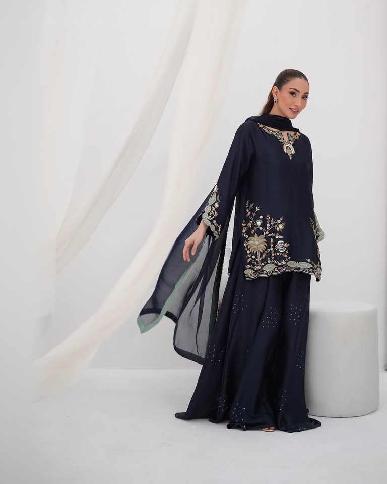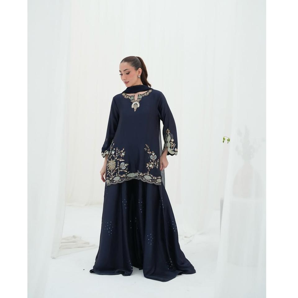 ชุดชาราร่าขายดี ผ้าเครปไหมธรรมชาติ งานปักมือประณีต ประดับเลื่อม แขนเสื้อแฟนซี พร้อมสายรัดแบบลาตักน์