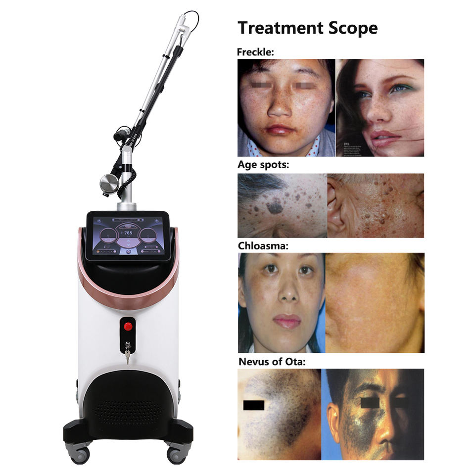 เครื่องเลเซอร์พิโกวินาทีแบบแนวตั้งกำลังสูง ขายดี 532nm/1064nm/785nm/1320nm เหมาะสำหรับร้านเสริมสวย/คลินิก