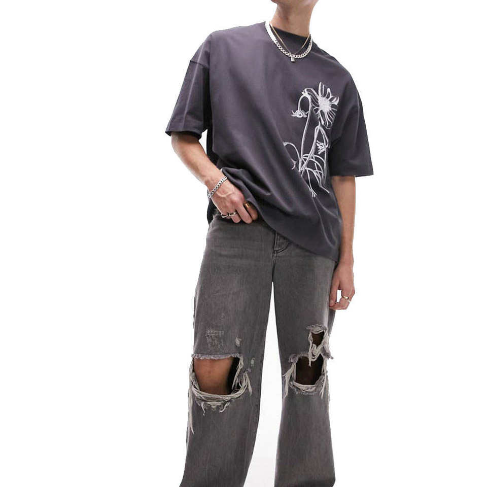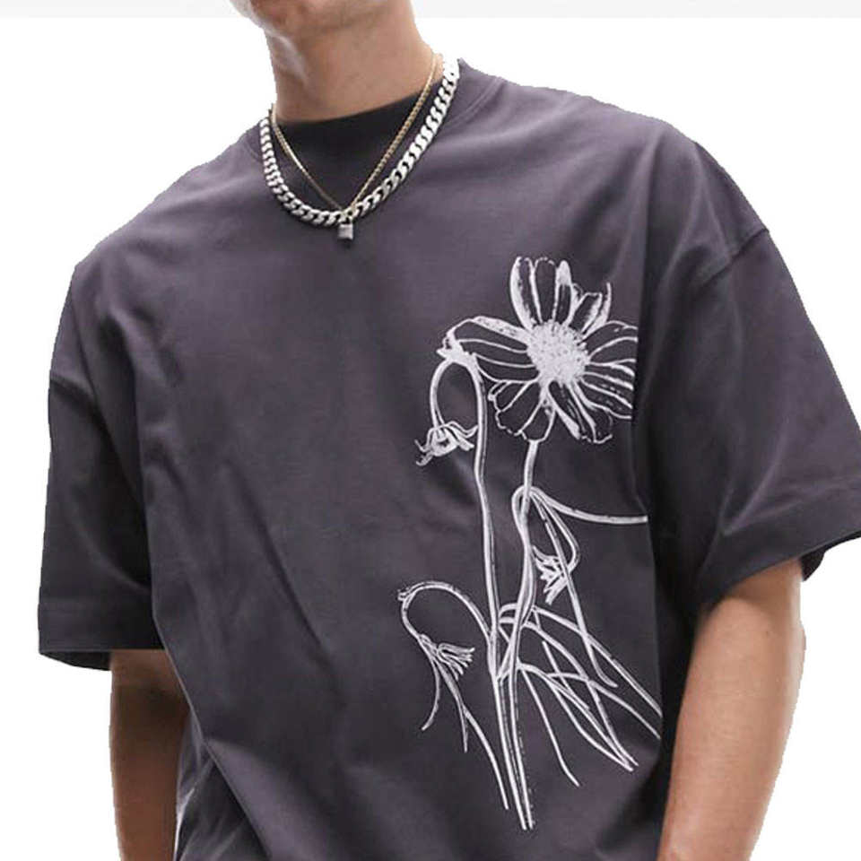 เสื้อยืดผ้าฝ้ายออร์แกนิกเฮฟวี่เวทสำหรับผู้ชายเสื้อยืดออกแบบลายว่างเปล่าขนาดใหญ่