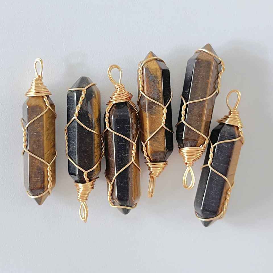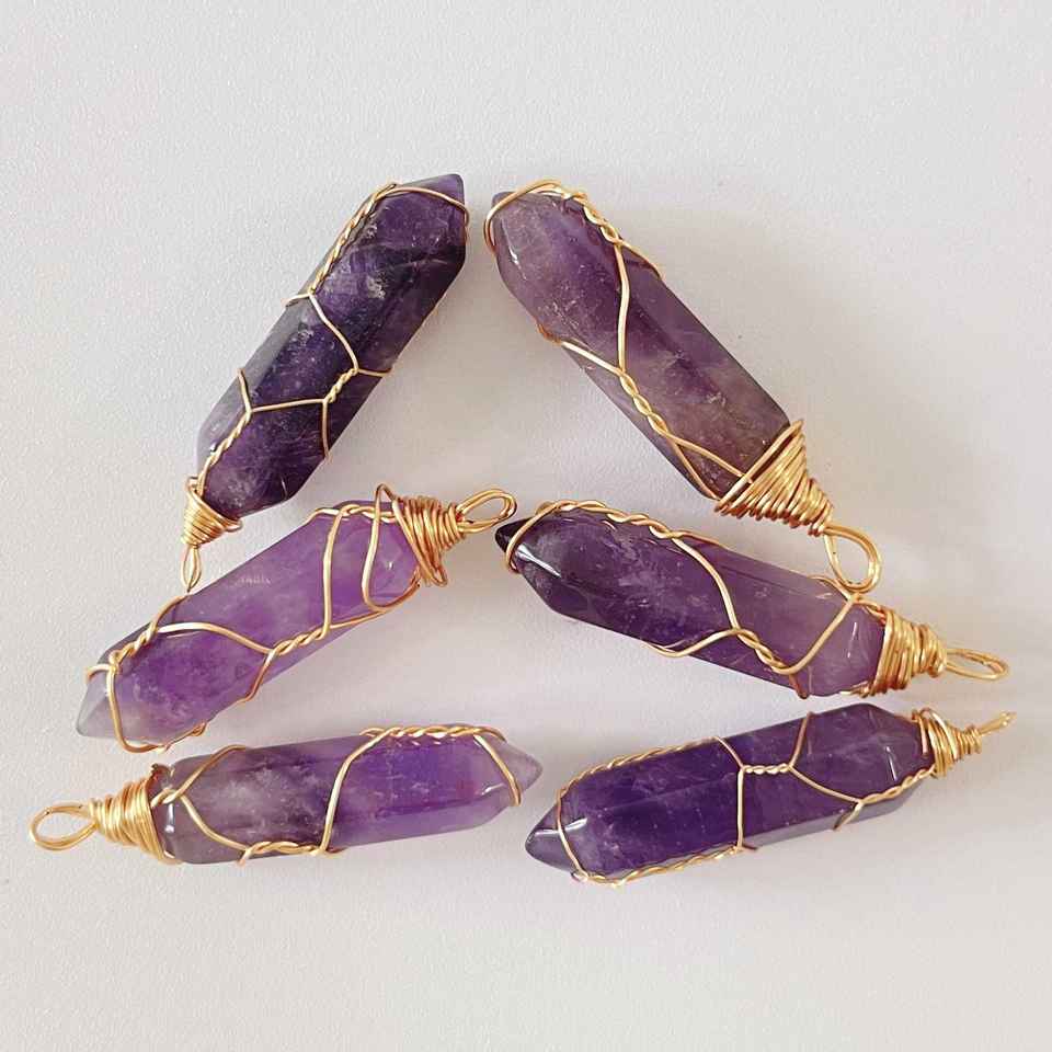จี้หินควอตซ์หกเหลี่ยมหุ้มลวดลายยอดนิยม พร้อมจี้ลายต้นไม้แห่งชีวิตหุ้มลวด