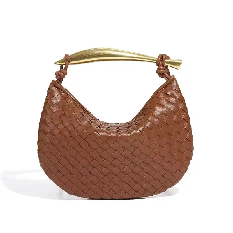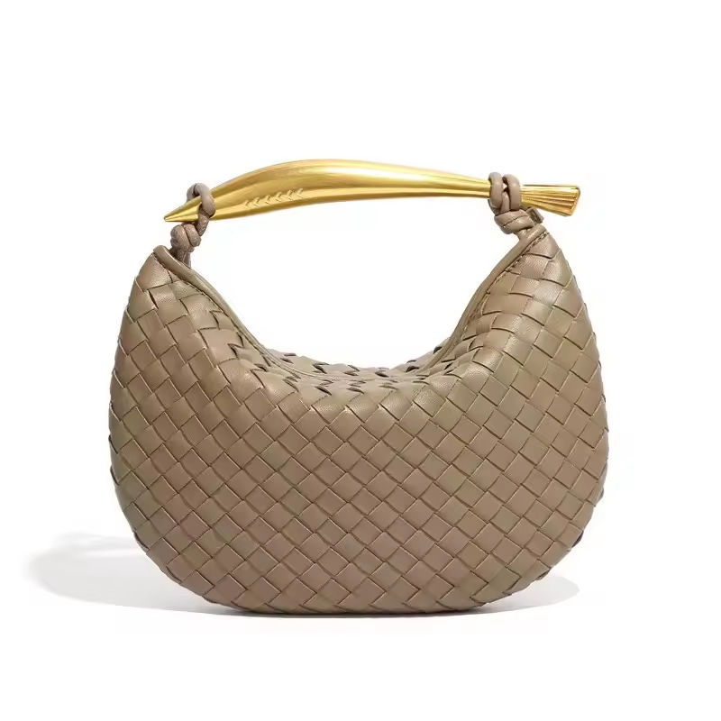 กระเป๋าครอสบอดี้ของผู้หญิงระดับไฮเอนด์ทำด้วยมือเสื้อถักโลหะพร้อมกระเป๋าพระจันทร์เสี้ยวดีไซน์ทันสมัยสไตล์ใหม่