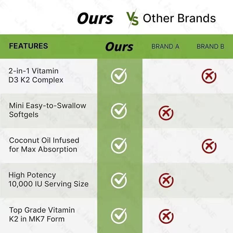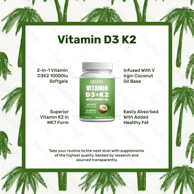 Hot-Selling High-Purity 2-in-1 Immune Support Vitamin D3 and K2 Softgel Capsule Non-GMO Supplement for Adults