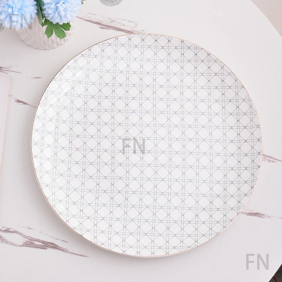 จานเซรามิกเนื้อ Bone China คุณภาพสูง ขนาด 16 นิ้ว ทรงกลม สำหรับใส่กาแฟหรืออาหาร ใช้ในบ้าน แพ็คชุดจาน ขายดี