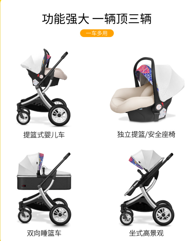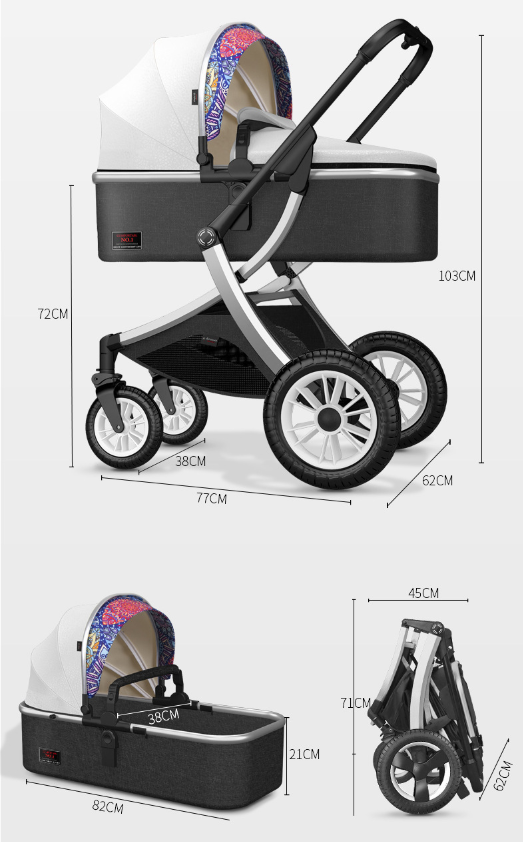 รถเข็นเด็กแบบพับได้คุณภาพสูง โครงอะลูมิเนียมอัลลอย 3 in 1 ดีไซน์หรูหรา ระบบเดินทางสะดวก ขายดี