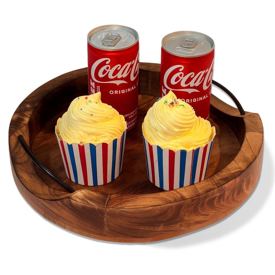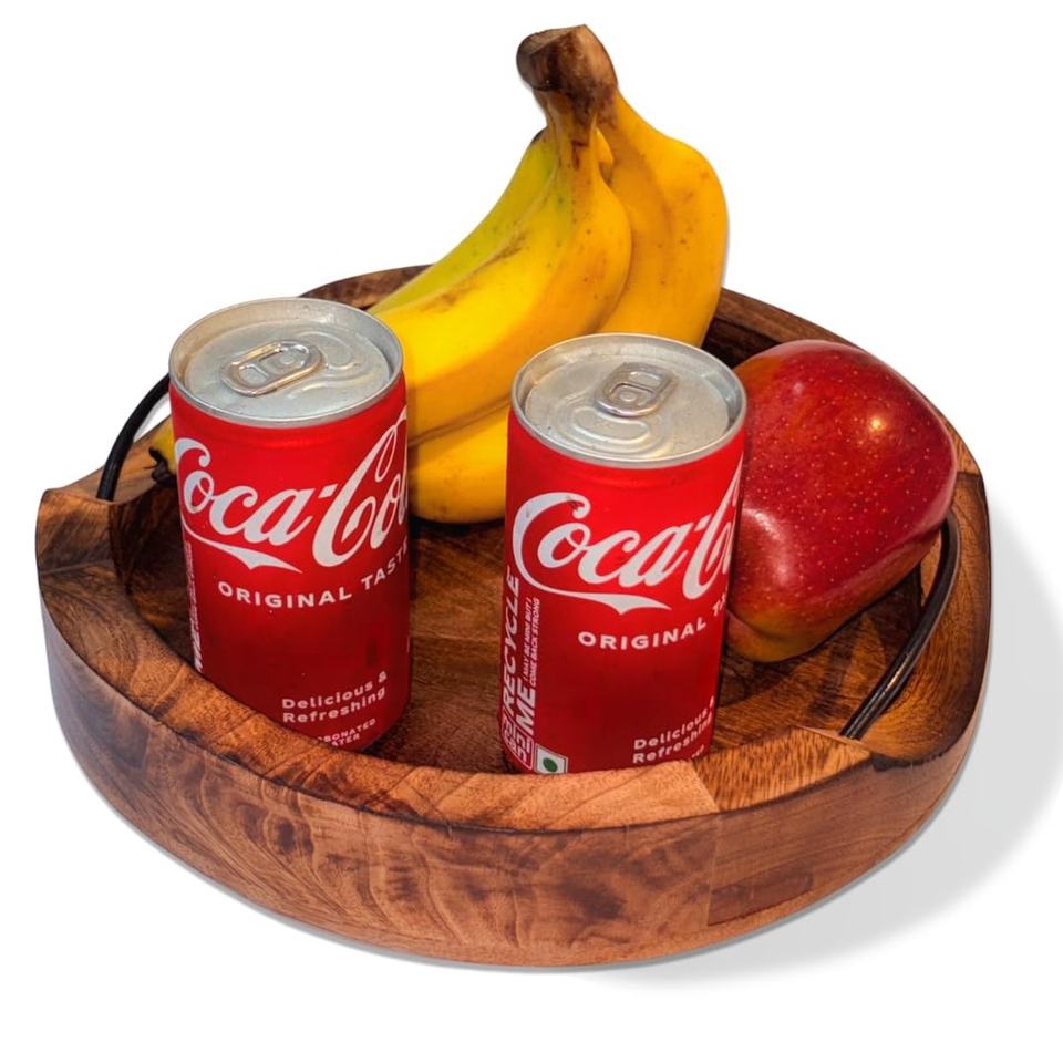 ถาดเสิร์ฟไม้อะคาเซียดีไซน์สี่เหลี่ยมคลาสสิกสำหรับบ้านโรงแรมวัสดุทองเหลืองลายกลมตามสั่งขนาด
