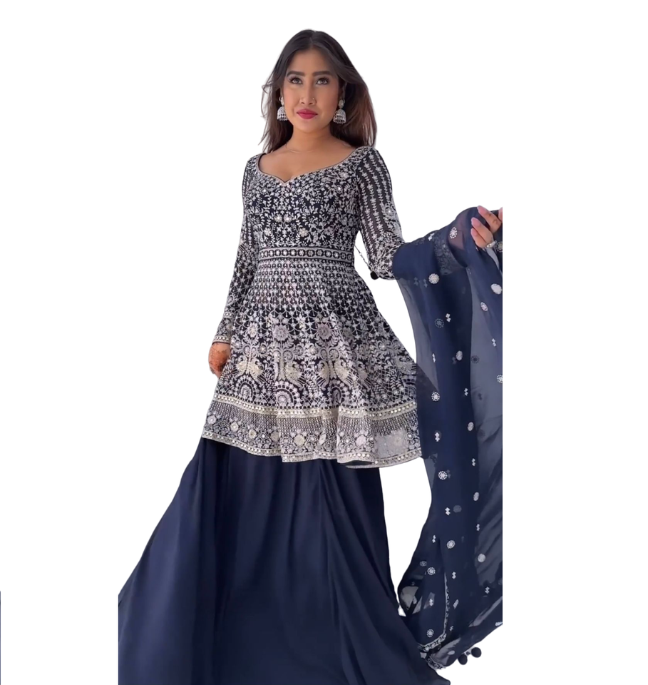 ขายร้อนคุณภาพสูงสวย Designer Lehenga ด้านบนและชุด Dupatta งานเย็บปักถักร้อย Georgette ผ้าขายส่ง