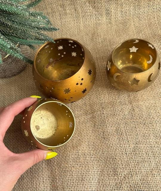 เชิงเทียนทองเหลืองเคลือบเงาทำด้วยมือของตกแต่งบ้าน