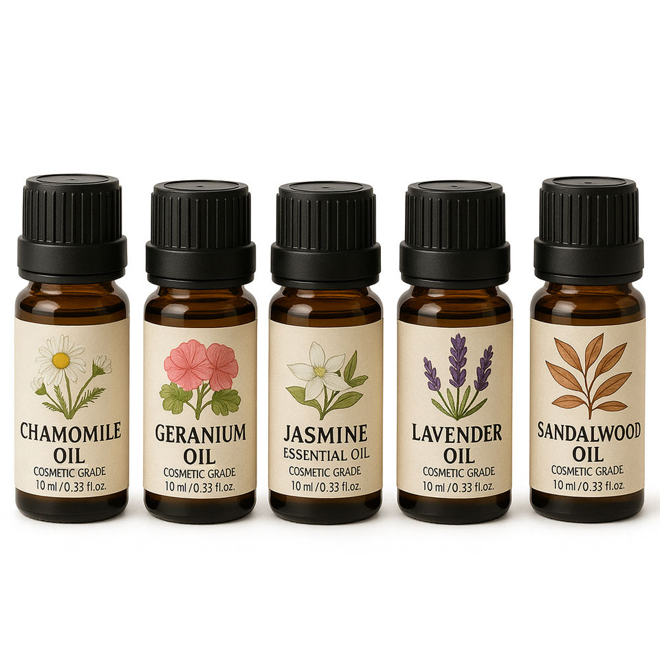 Geranium หอม, ช่อลาเวนเดอร์, ดอกมะลิ, คาโมไมล์, ไม้จันทน์ส่วนผสม