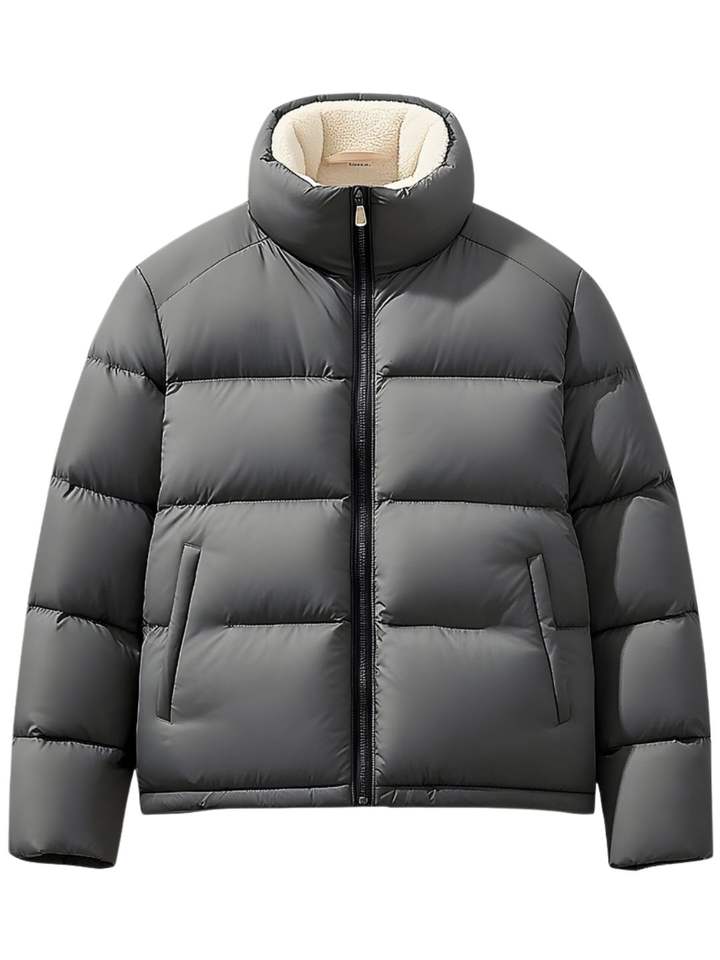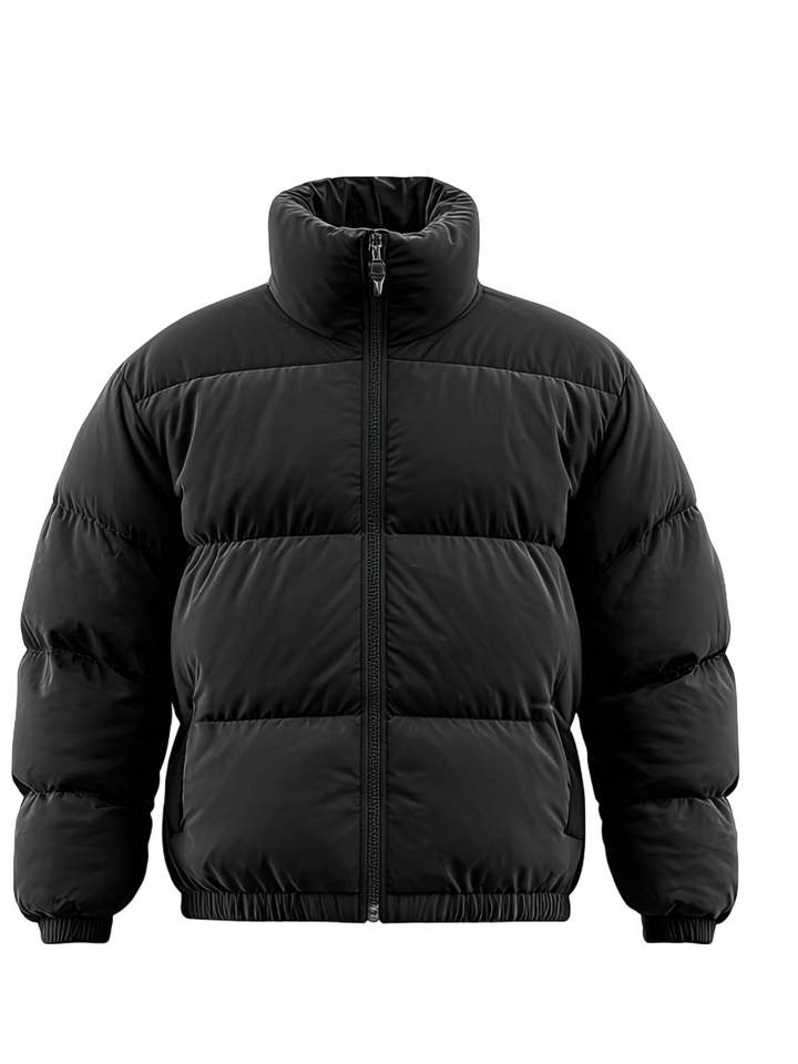 แจ็คเก็ตฤดูหนาวผู้ชายคุณภาพสูงขายดี พิมพ์โลโก้ตามสั่ง สไตล์พัฟเฟอร์บอมเบอร์ คอตั้ง ผ่านกระบวนการบอนด์