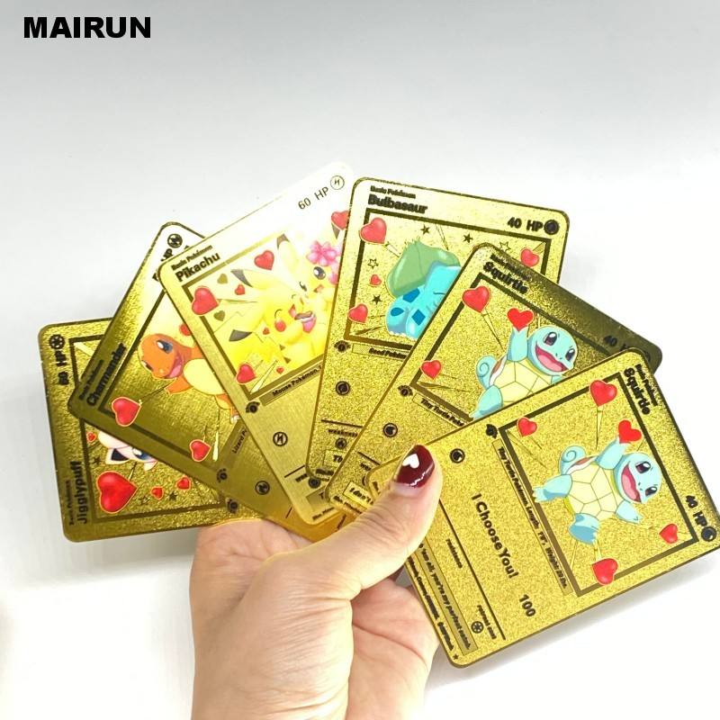ขายดีของขวัญวันวาเลนไทน์คุณภาพสูงโลหะทองโผล่ขึ้นมาโรแมนติกฉันรักคุณบัตร Pikachu & eevee ฉันเลือกคุณบัตร