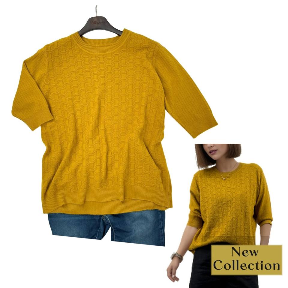 สเวตเตอร์ถักแบบสวมหัวสำหรับผู้หญิงเสื้อสเวตเตอร์คอกลมแขนสั้นลายสีทองสำหรับสไตล์ลำลองฤดูใบไม้ร่วง