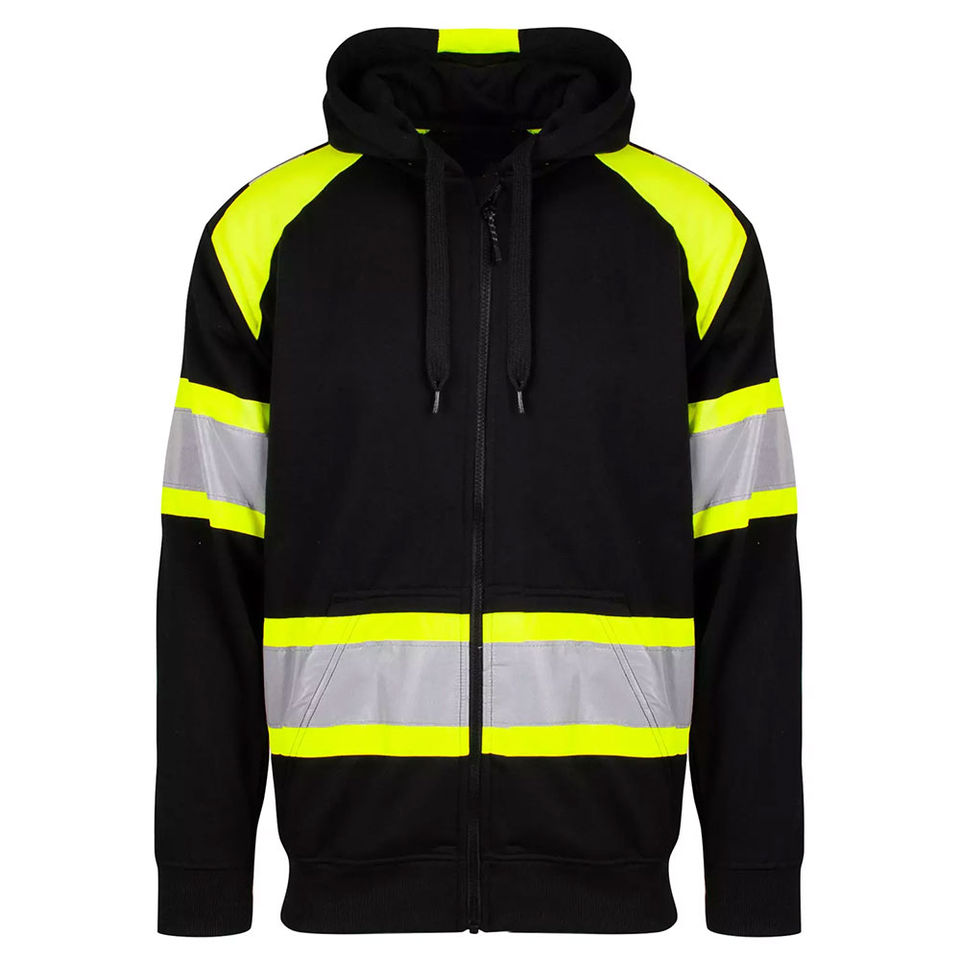 เสื้อฮู้ดสะท้อนแสง ANSI Class 2 คุณภาพสูง ขายดี พร้อมซิป ผ้าฝ้ายฟลีซ สำหรับงานอุตสาหกรรม ปรับแต่งได้เต็มที่ พร้อมไฟ LED
