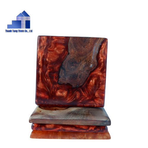 ถาดรองแก้วไม้อีพ็อกซี่เรซินไม่เหมือนใครสำหรับเครื่องครัวและเครื่องใช้ในบ้านที่ผลิตในเวียดนาม