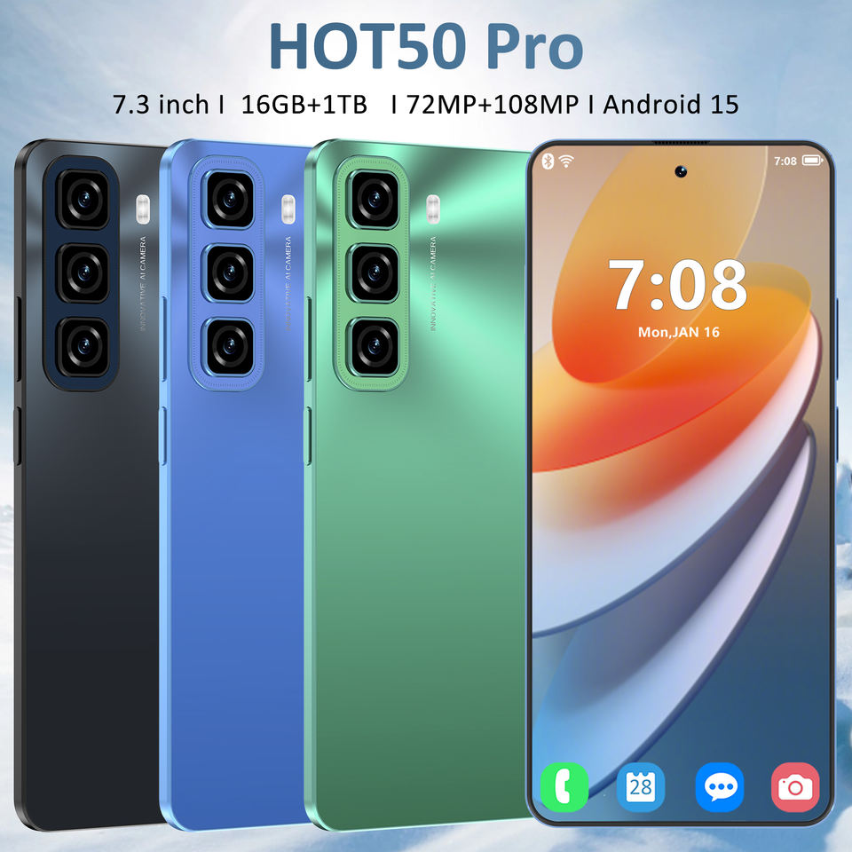 โทรศัพท์มือถือ Hot50 Pro ระบบ Android หน้าจอ Incell ขนาด 7.3 นิ้ว ความจุ 16G+1TB รองรับ 4G แท้ เวอร์ชันสากล สมาร์ทโฟน ขายดี