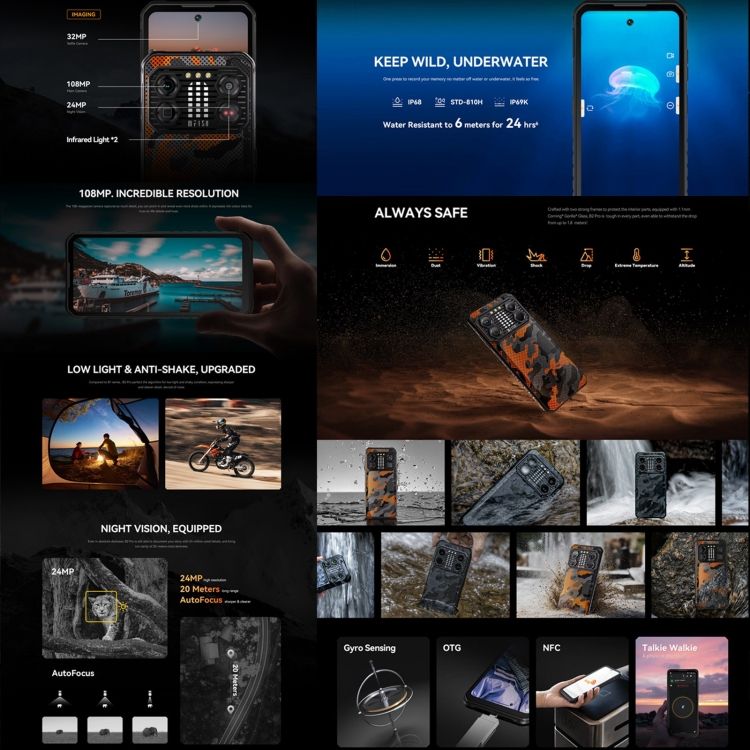 โทรศัพท์มือถือ IIF150 B2 Pro รุ่นทนทาน ขายดี, 12GB+256GB, สแกนลายนิ้วมือด้านข้าง, มองเห็นในที่มืด, หน้าจอ 6.78 นิ้ว Android 13 MTK Helio G99 Octa Core