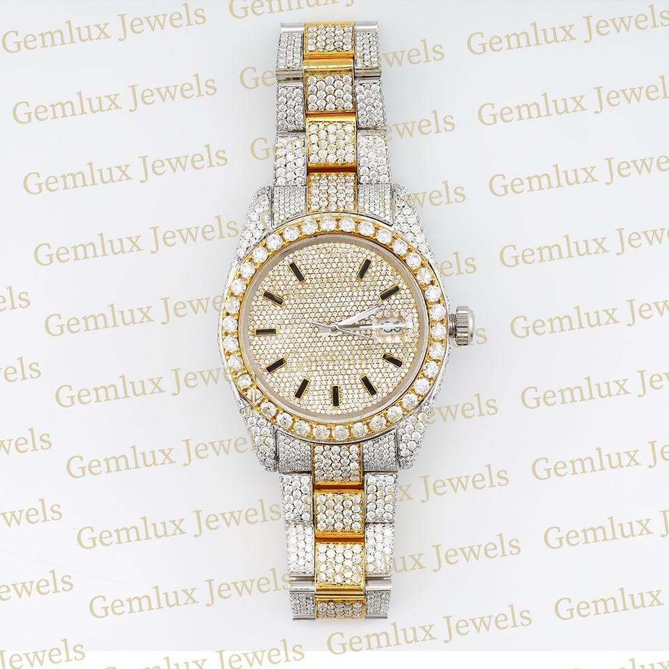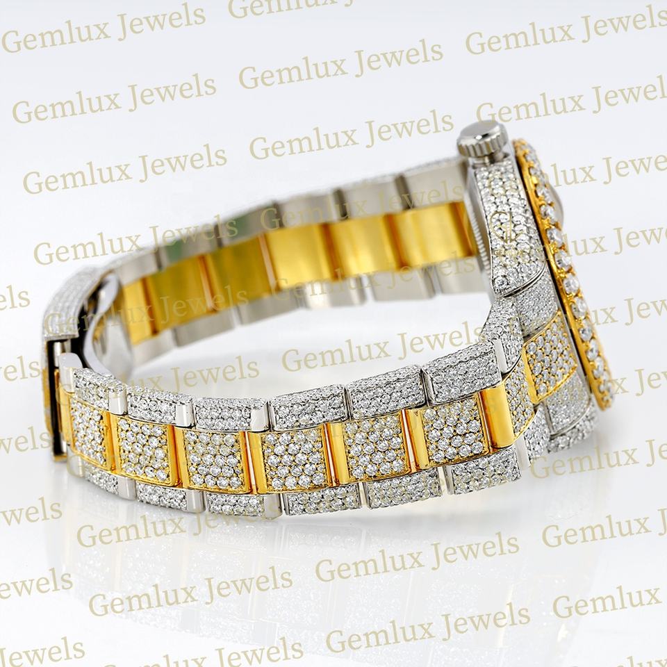 นาฬิกาเพชรมอยส์ซาไนท์สำหรับผู้ชายชุบทอง14K เคลื่อนไหวอัตโนมัติเย็น
