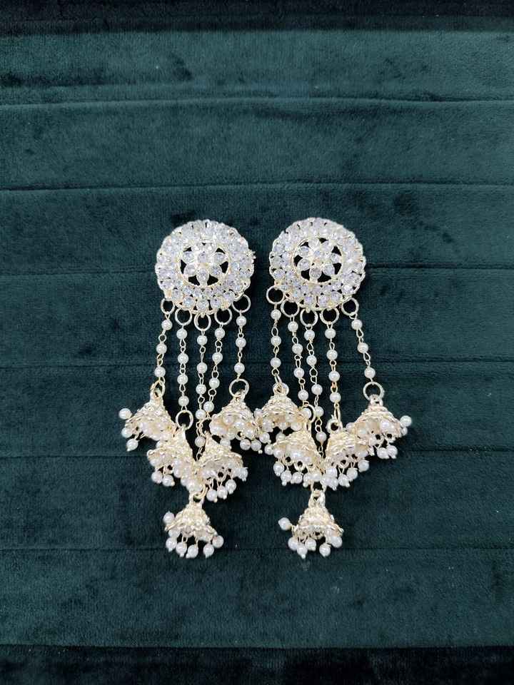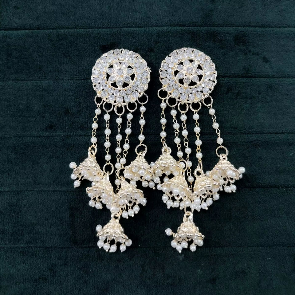 ต่างหูแบบห้อยประดับเพชรซิร์คอนชุบทองโบราณ สไตล์อินเดียสำหรับงานแต่งงาน ขายดี