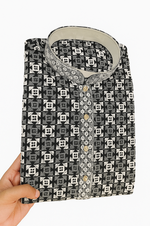 ชุดเสื้อกางเกงผ้าฝ้ายแบบดั้งเดิมของผู้ชายลายชนเผ่าอินเดียนแดงพร้อมชุดนอนสำหรับปาร์ตี้งานแต่งงานดีไซน์ทันสมัยปราศจากริ้วรอย