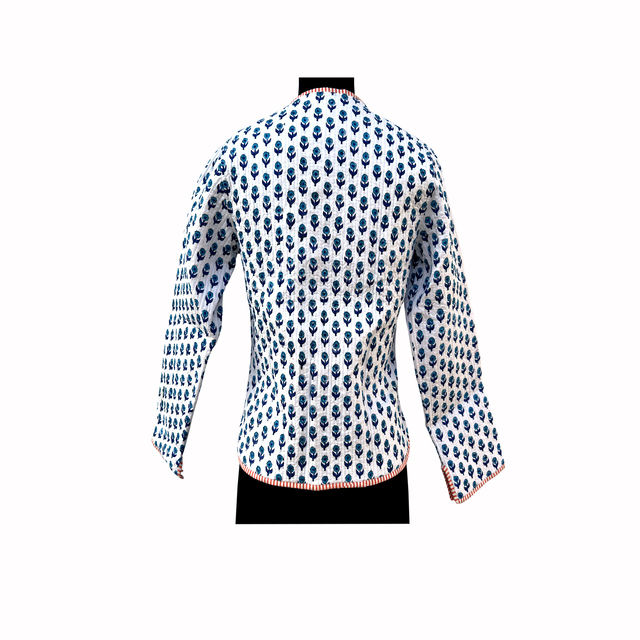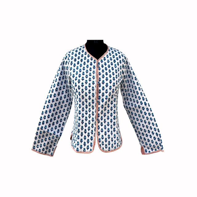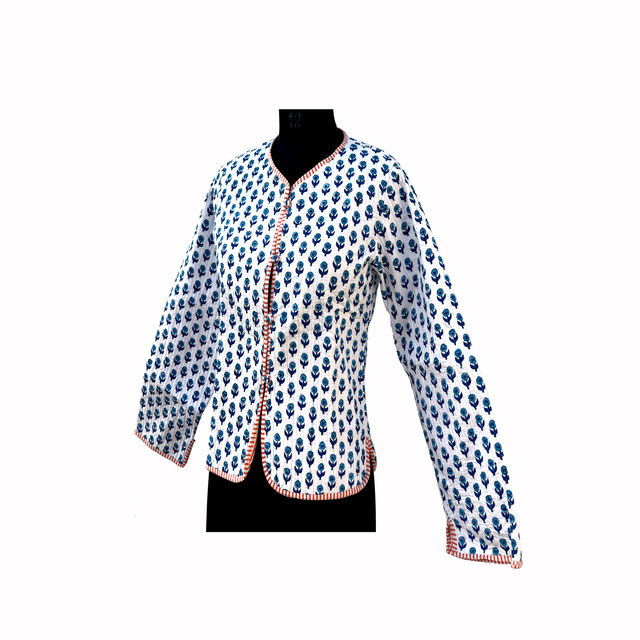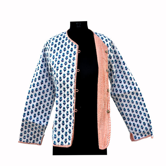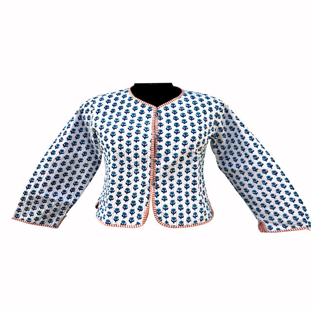 เสื้อแจ็คเก็ตขนแกะผู้หญิงแบบสั้นสำหรับฤดูหนาว พิมพ์ลายบล็อกอินเดียด้วยมือ ระบายอากาศได้ดี ติดกระดุม กลับด้านได้ ผลิตจากผ้าฝ้าย 100% ขายดี