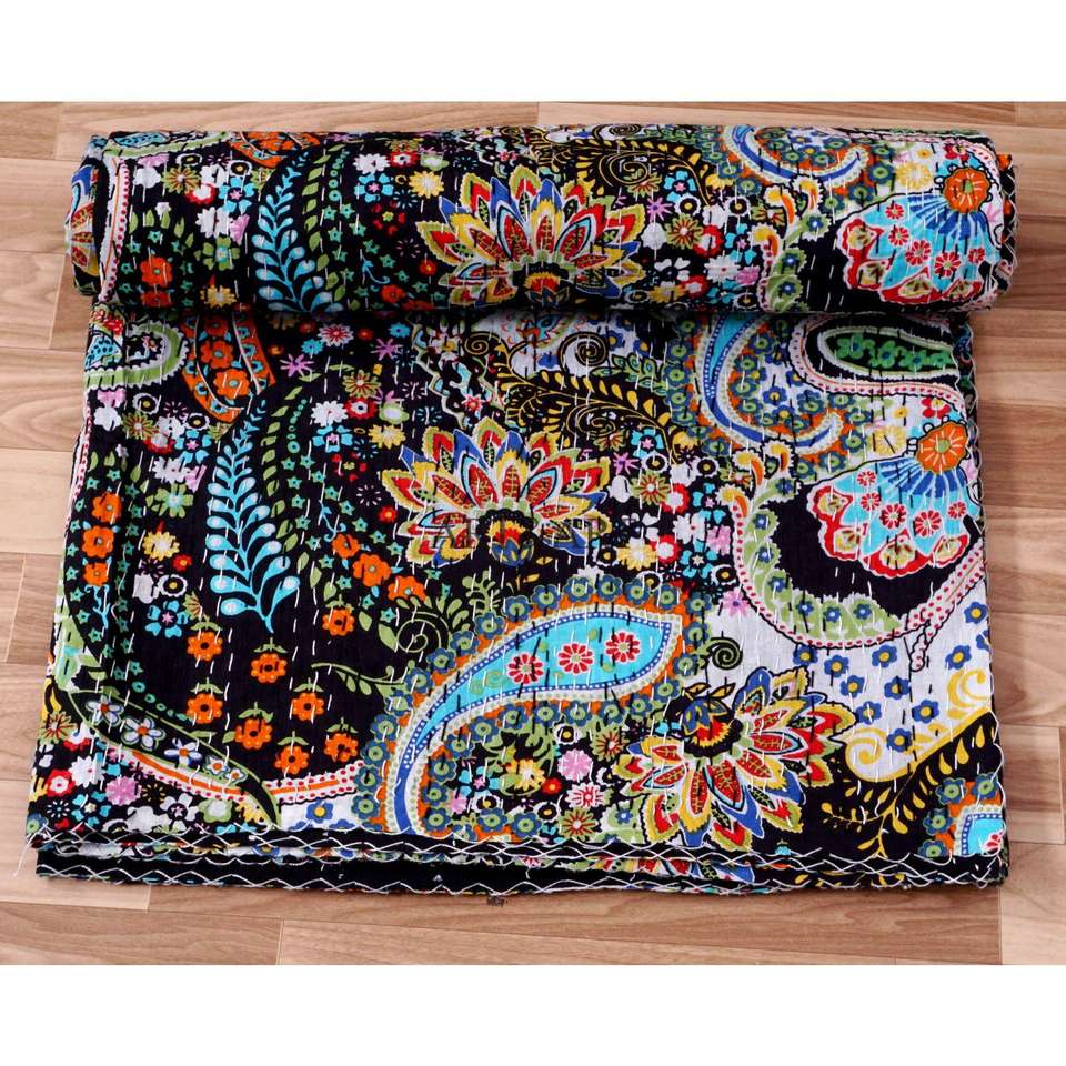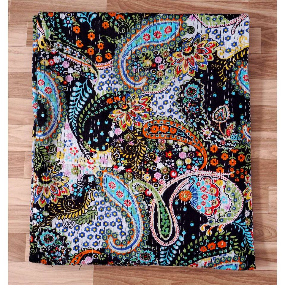 ผ้าห่มวินเทจทำมือลายดอกไม้คุณภาพสูงจากอินเดีย ผลิตจากผ้าฝ้ายออร์แกนิคเป็นมิตรกับสิ่งแวดล้อม ใช้ได้สองด้าน ขายดี
