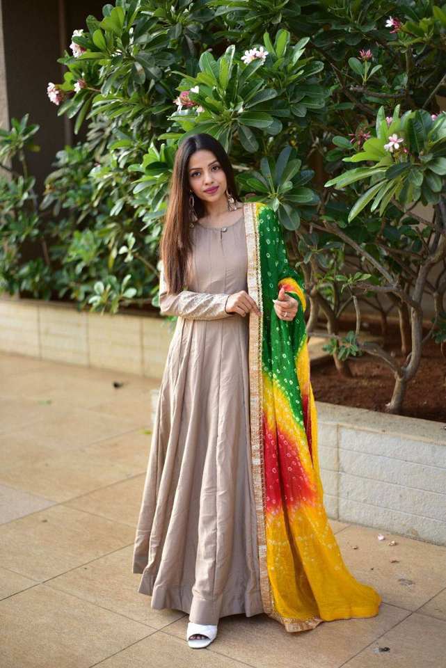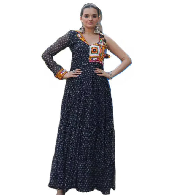 ชุดยาวอินเดียเย็บเต็มรูปแบบโกตาซาริผ้าพันฮันนิพิมพ์ลายชุดยาว anarkali