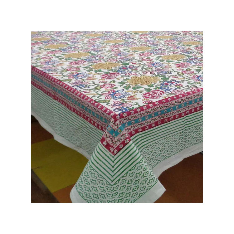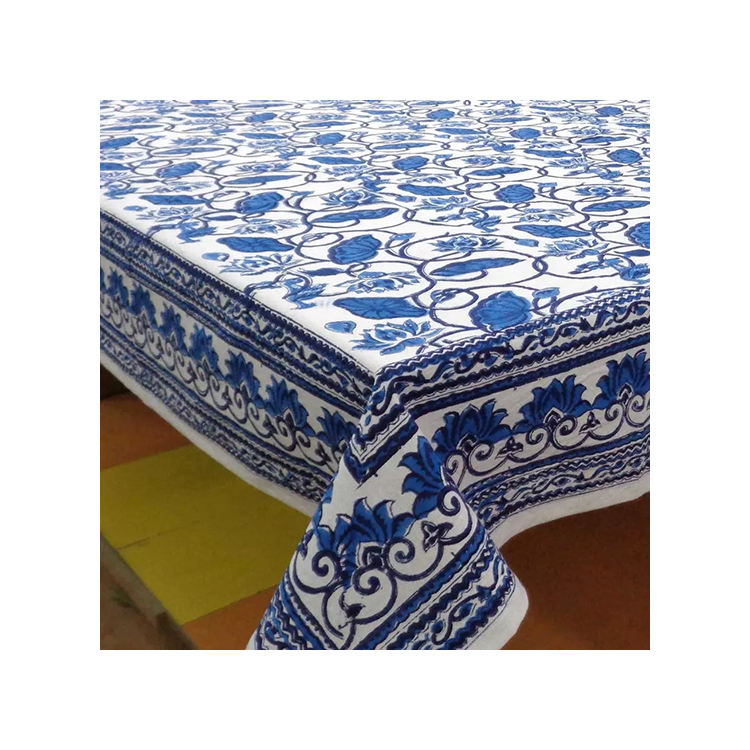 ผ้าแคนวาสลายดอกไม้ทำด้วยมือหยกสีฟ้าแบบเปิดทำจากผ้าฝ้ายอินเดียพิมพ์ลายปรับแต่งได้ยาว