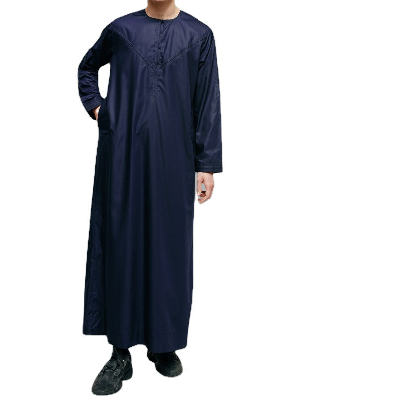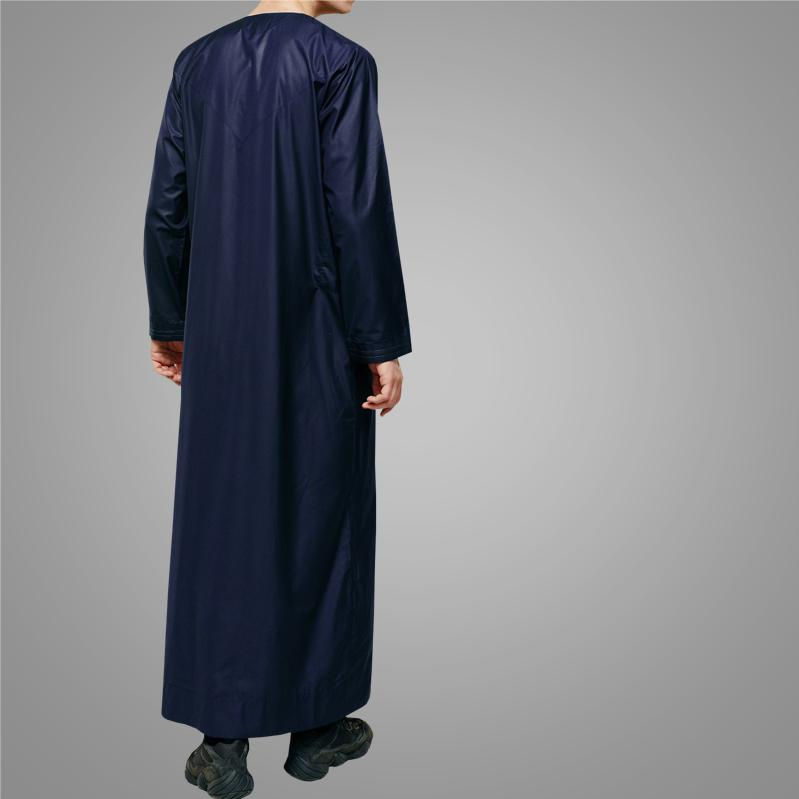 Hot Selling Islamic Clothing Long Sleeve Men Thobe Jubbah Zipper Jubbah Muslim Saudi Arab Thobe Dubai Thobe for Mens Blue Dyed