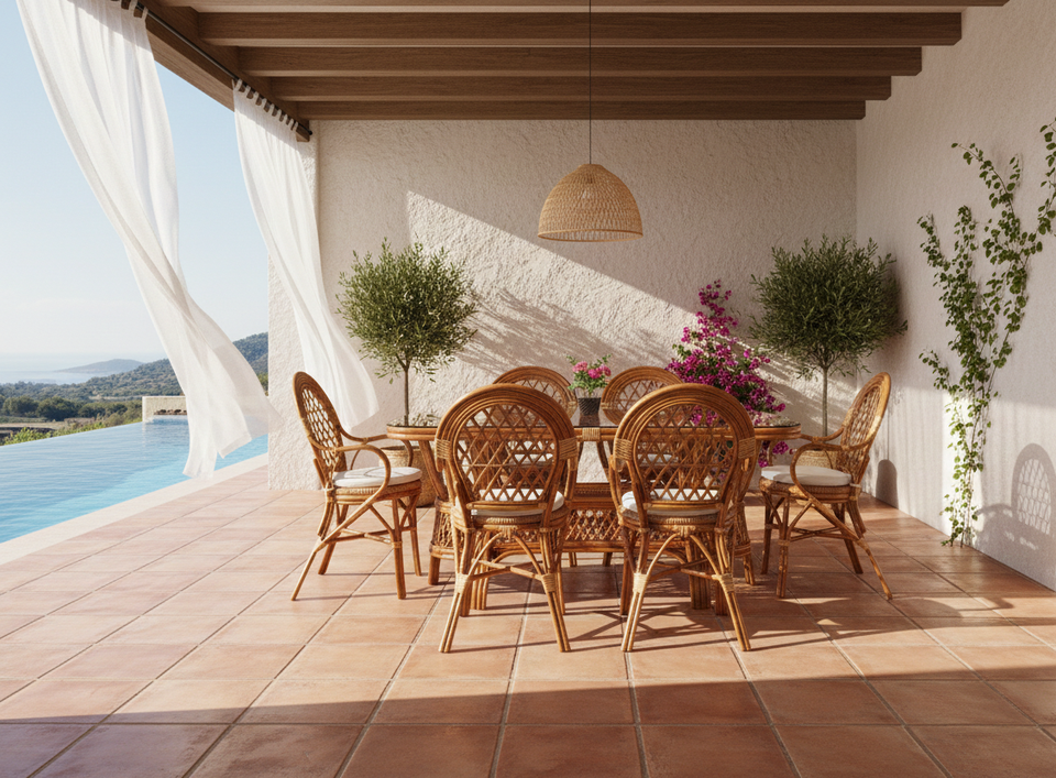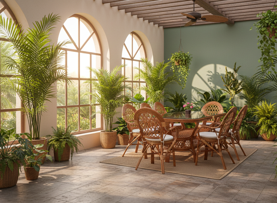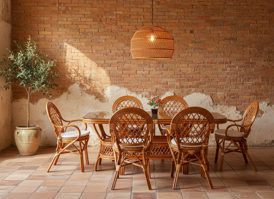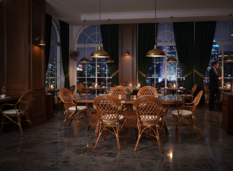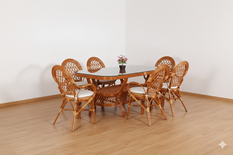 ชุดโต๊ะรับประทานอาหารหวาย JAVA ดีไซน์สวย ขายดี สไตล์ดั้งเดิม โต๊ะยาว ทำด้วยมือ เหมาะสำหรับใช้ในโรงแรม จากอินโดนีเซีย