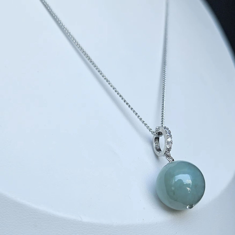 Natural Jadeite type A, 925 silver, cultured diamondเครื่องประดับวัสดุหลัก