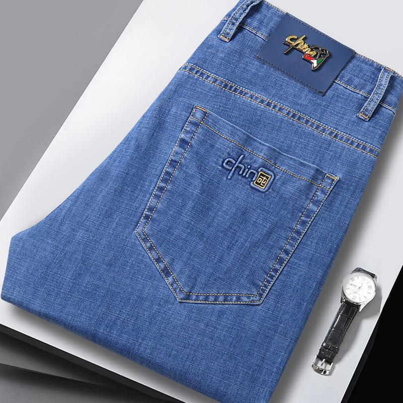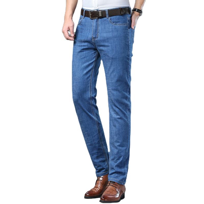 กางเกงยีนส์ผู้ชายขายดี แฟชั่นสตรีทแวร์ คุณภาพสูง ฟอกสีปานกลาง กางเกงยีนส์ผู้ชายสไตล์ลำลองสำหรับธุรกิจและออฟฟิศ กางเกงยีนส์สั่งตัดสำหรับผู้ชาย