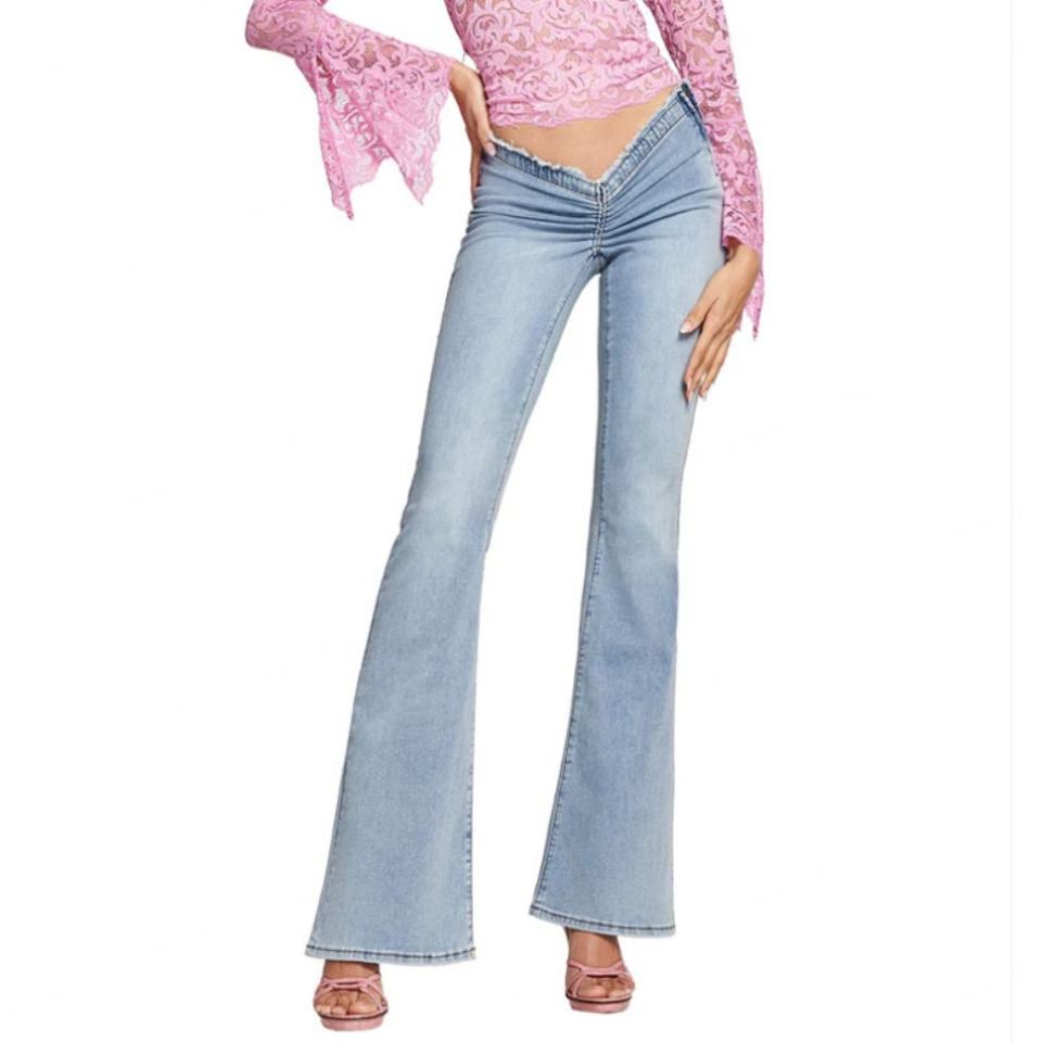 Hot Selling Jeans Pants Sexy V Design Low Waist Blue Washed Jeans Femme