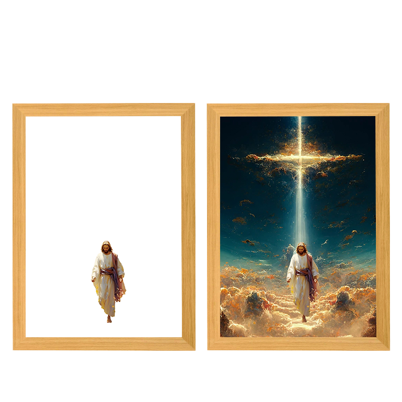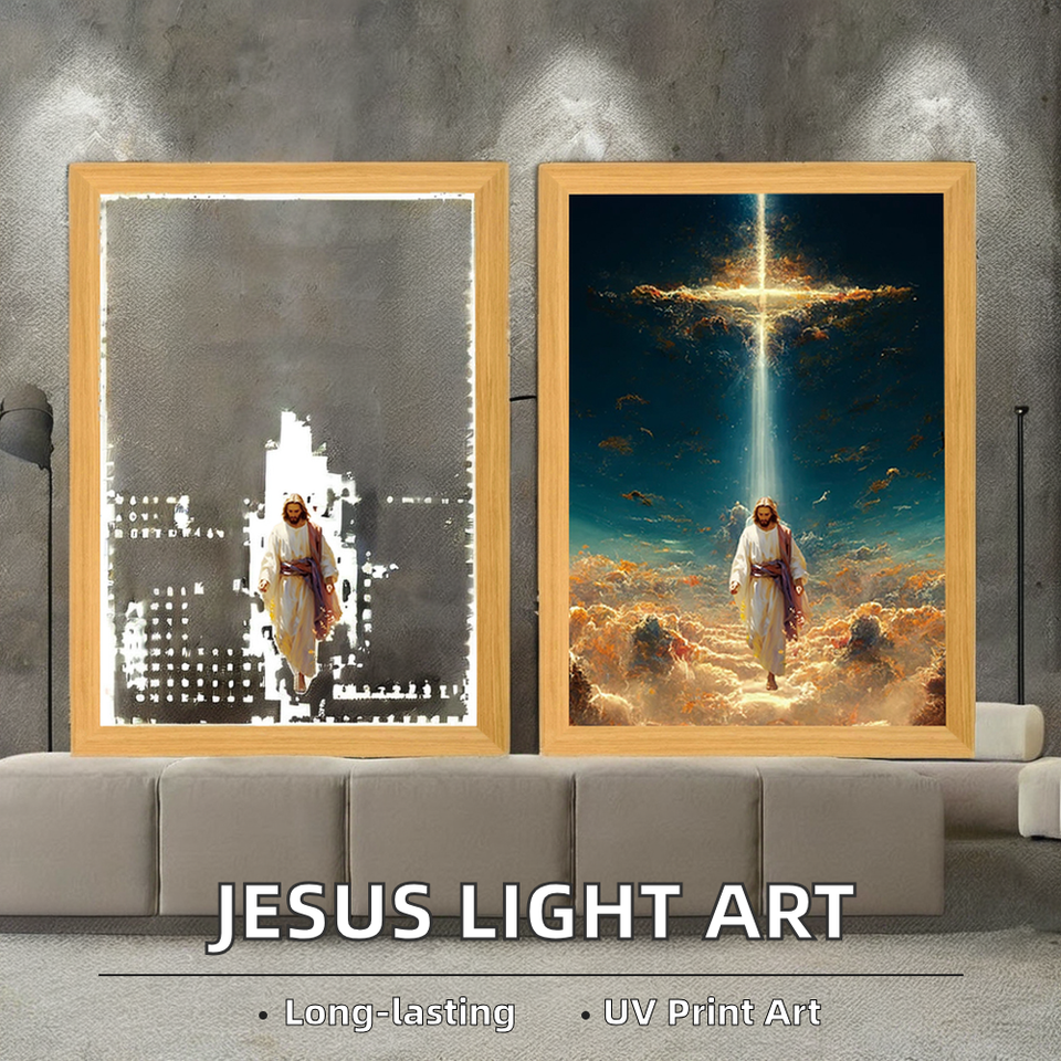 ภาพวาดแสงพระเยซูคริสต์บนกรอบไม้งานศิลปะทางศาสนาที่ซื่อสัตย์คริสตัลอะนิเมะสไตล์การออกแบบที่ทันสมัย