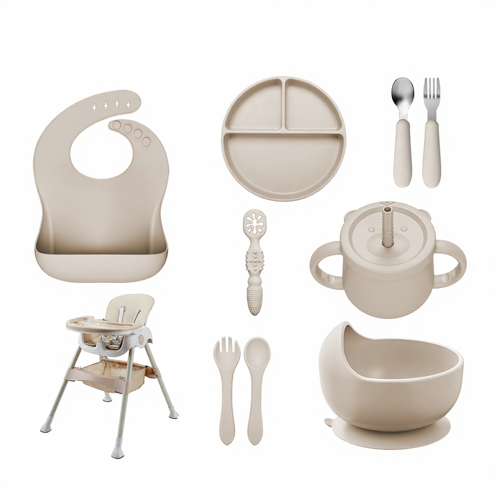ชุดป้อนอาหารซิลิโคนสำหรับเด็กและเก้าอี้สูง