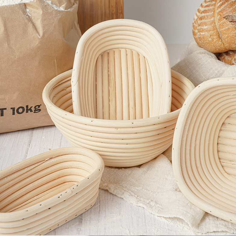 ตะกร้าสานมือทรงสี่เหลี่ยมผืนผ้าจากหวายธรรมชาติ สำหรับการหมักแป้งขนมปัง ขายดี อุปกรณ์ทำครัวและอบขนม