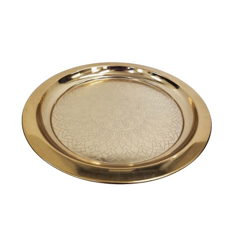 เครื่องใช้ในครัวและบนโต๊ะจานและแผ่นเหล็กกลมพร้อมแผ่นทองเหลือง EPL สีทอง