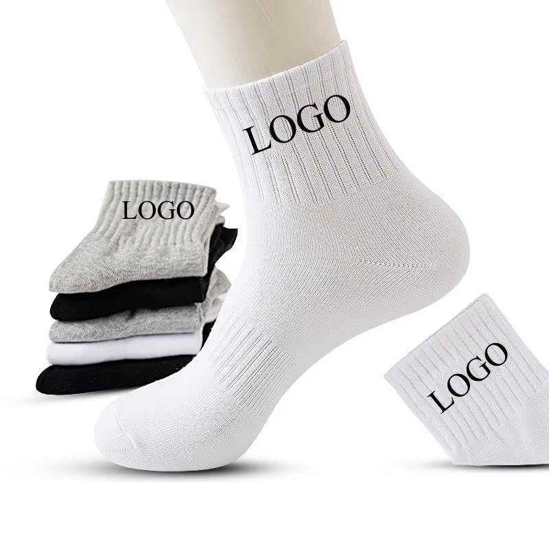 ถุงเท้ากีฬาแบบถักสำหรับผู้ใหญ่ทุกเพศถุงเท้าผ้าฝ้ายผู้ชายสีดำขาวดำสำหรับฤดูร้อนออกแบบโลโก้ได้ตามต้องการ