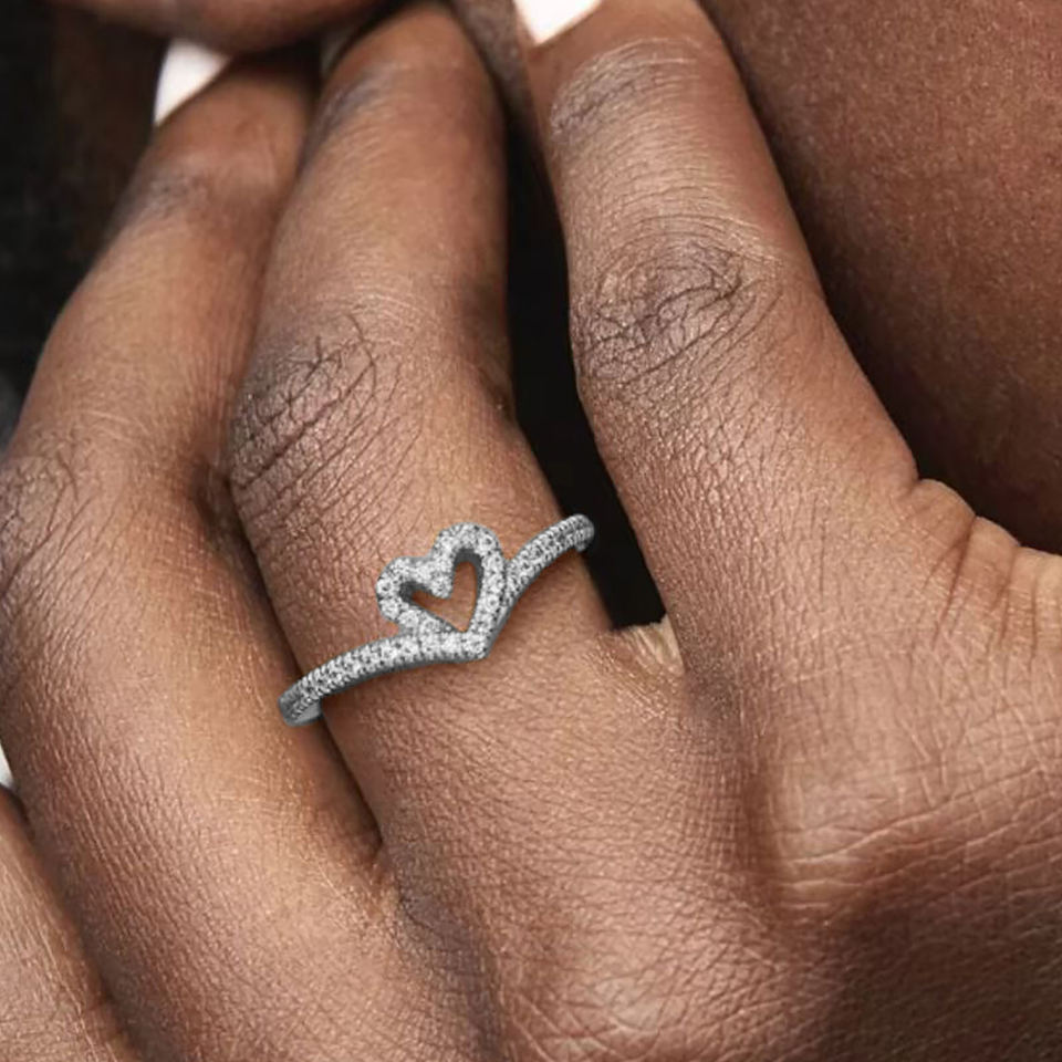 Product name:10K Gold or 925 Sterling Silver Hollow Open Heart Band Ring