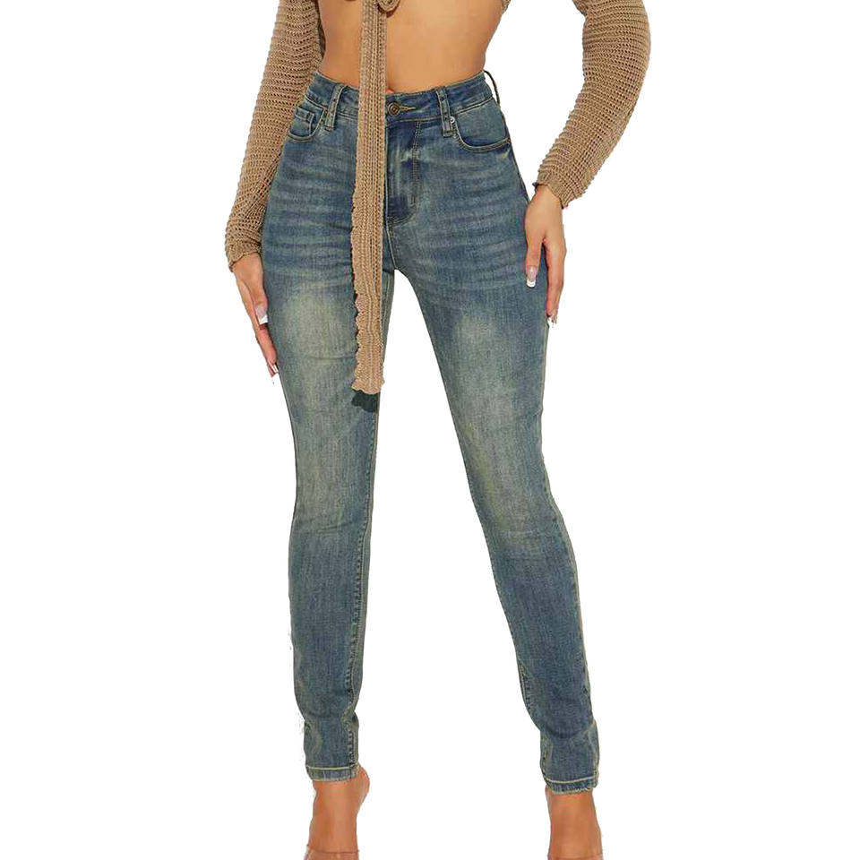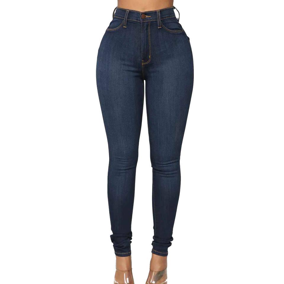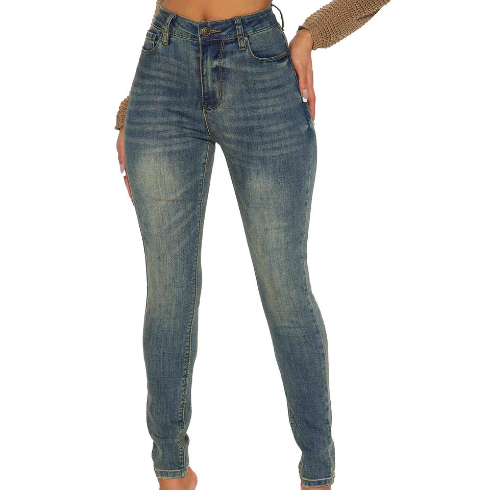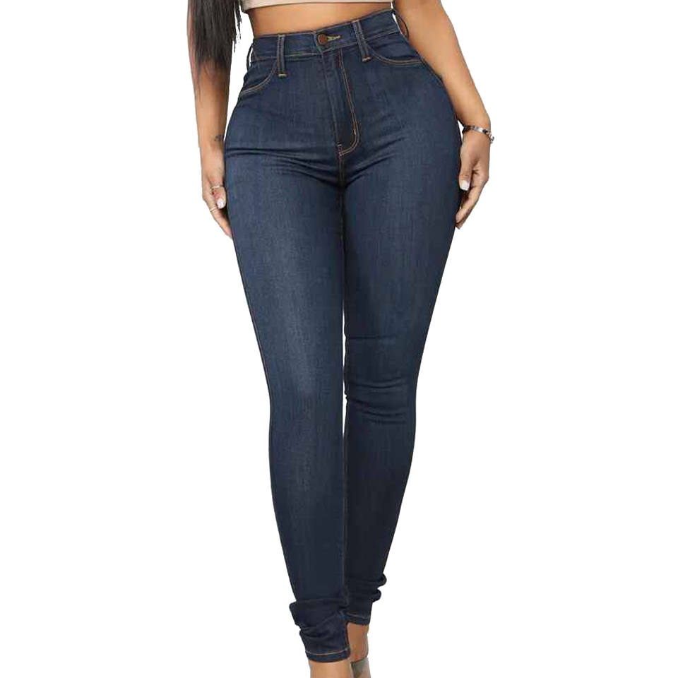 กางเกงยีนส์เอวสูงสำหรับผู้หญิงกางเกงทรงดินสอสลิมล้างผอม