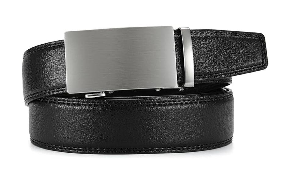เข็มขัดหนังแท้ปรับแต่งได้สไตล์เป็นทางการพร้อมหัวเข็มขัดเหล็ก