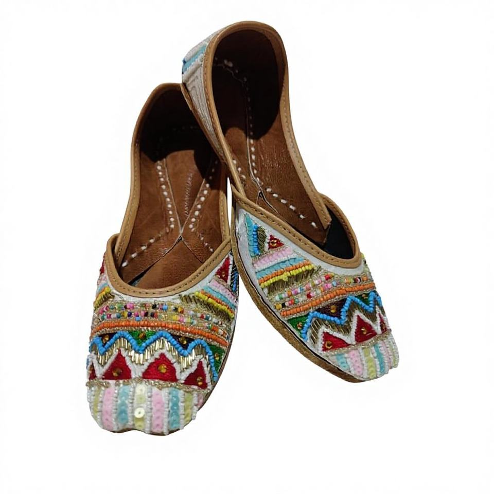 รองเท้าเดินปาร์ตี้แฟชั่นดีไซน์ดั้งเดิม BS INTERNATIONAL สำหรับเด็กผู้หญิง งานปักลายสวยงาม หนังอินเดีย งานแฮนด์เมด ขายดี