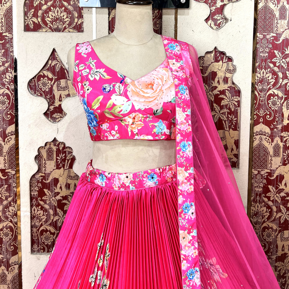 ขายร้อน lehenga ในพระราชินีสีชมพู COLOUR พิมพ์ลายทันสมัยและละเอียดอ่อนสัมผัสมือเพชรสำหรับความสง่างามแบบดั้งเดิมที่จัดหาจำนวนมาก