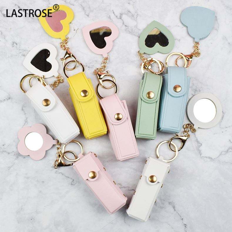 กระเป๋าใส่ลิปสติก PU พร้อมพวงกุญแจกระจก