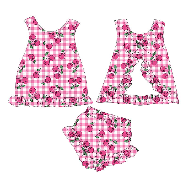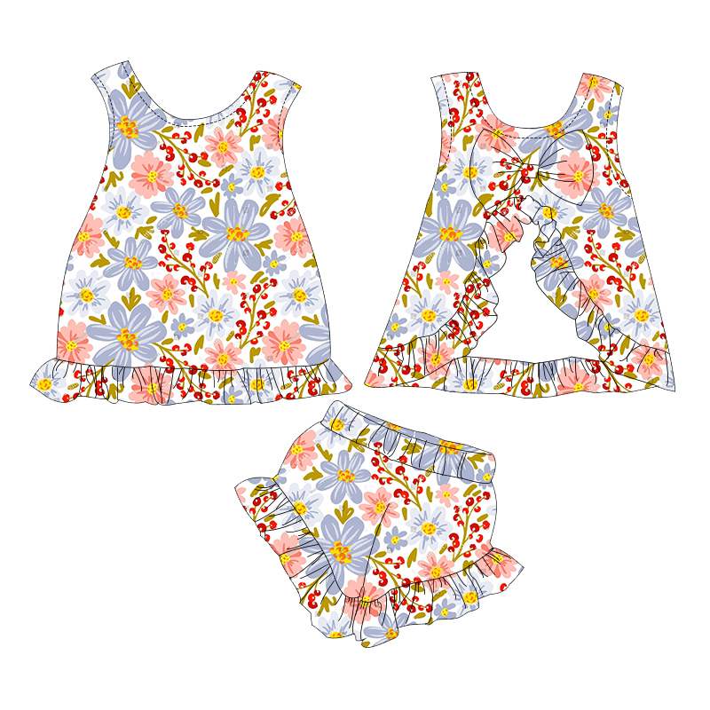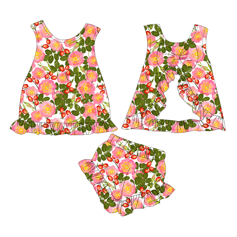 ชื่อสินค้า:เสื้อแขนกุดสำหรับเด็กผู้หญิงวัยหัดเดินพร้อมดีเทลโบว์และกางเกงขาสั้นเข้าชุด