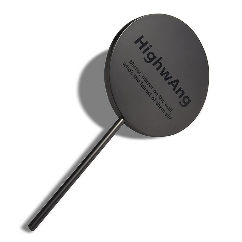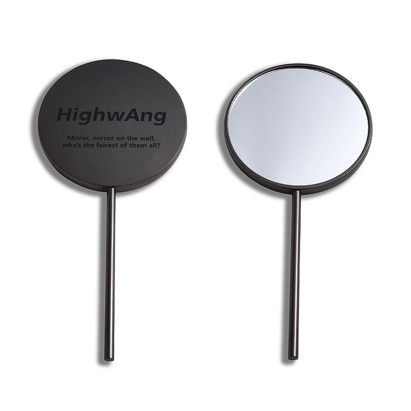 กระจกแต่งหน้าแบบถือขนาดใหญ่ รูปทรงลูกอมเคลือบนิกเกิลสีดำ ขายดี