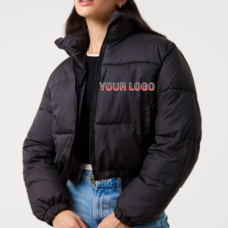 เสื้อครอปแขนยาวเสื้อแจ็คเก็ตทรงพองคอตั้งพิมพ์โลโก้ได้ตามต้องการสำหรับฤดูหนาว