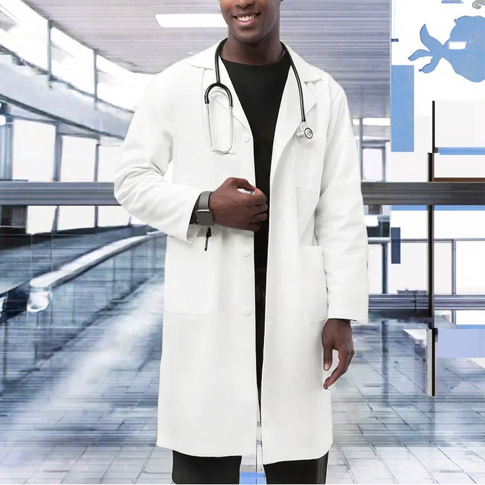 เสื้อโค้ทแลปแขนยาวสีขาวเสื้อโค้ทสำหรับห้องปฏิบัติการทางการแพทย์ของโรงพยาบาลเสื้อคลุมสีขาว