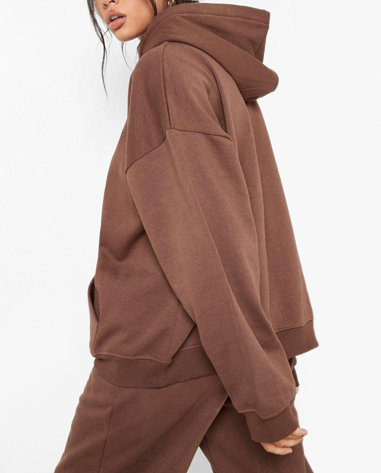 เสื้อฮู้ดดี้ทรงหลวมแบบสวมหัว ไหล่ตก สไตล์สตรีทแวร์ เนื้อผ้าหนานุ่ม อุ่นสบาย สีพื้น มีกระเป๋าจิงโจ้ ขายดี